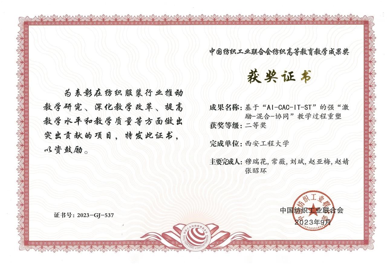 中国纺织工业联合会纺织高等教育教学成果二等奖