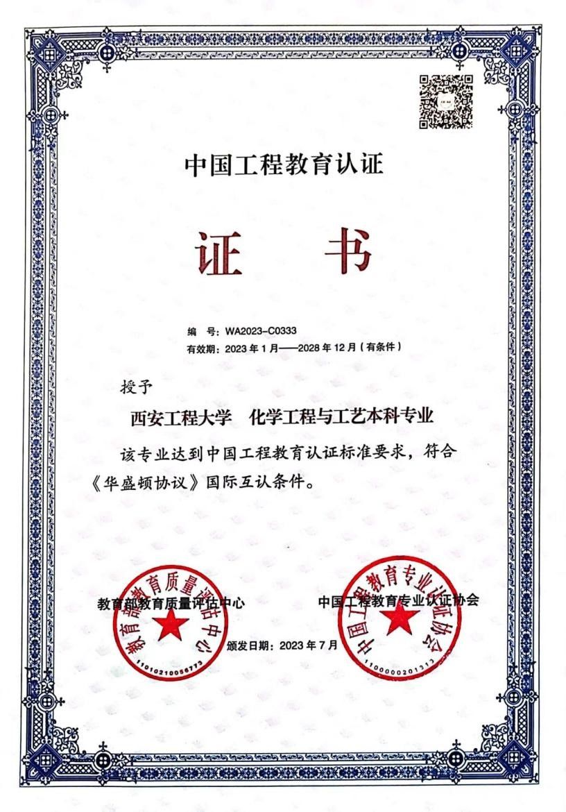 本专业2010年设立,2010年:获批化学工程与技术一级学科硕士学位授权点和化学工程(材料与化工)专业学位授权点,2023年通过中国工程教育专业认证,符合《华盛顿协议》国际认证条件,有效期6年(2023年1月至2028年12月)。依托化学工程与技术一级学科,拥有“陕西省化学实验教学示范中心”、“西安市纺织化工助剂重点实验室”、“生物资源开发及污染防控”陕西省高校工程研究中心、“纺织印染废水处理及回用”陕西省高等学校重点实验室等省级教学科研平台。具有学士学位和硕士学位授予权,旨在培养能够从事生产运行与技术管理、工程设计、技术开发、科学研究、教育教学等方面工作的高级应用型人才与复合型人才。本专业师资梯队合理、师资力量雄厚,专任教师全部为博士学历。