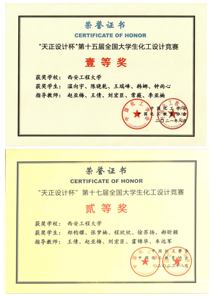 专业遵循工程教育专业认证三大理念:“学生中心、成果导向、持续改进”。人才培养质量高。学生获包含全国大学生化工设计竞赛总决赛一等奖、全国大学生化工实验大赛总决赛一等奖在内的两项赛事的国家级奖项共17项;获中国大学生Chem-E-Car竞赛“金轮胎奖”1项;获陕西“挑战杯”大学生课外学术科技作品竞赛一等奖1项;近三年主持大学生创新创业省级以上项目共16项。毕业从事化工、能源、印染、材料等各领域工作的学生踏实肯干,工作积极,在单位得到肯定。