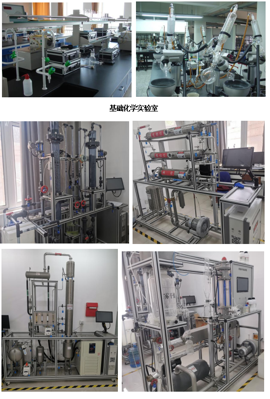 为保证教学需要,培养学生实际操作能力,实现理论与实践的紧密结合,本专业基础设施完备,可用于教学的实验室包括无机化学、有机化学、分析化学、物理化学四大基础化学实验室;化工原理、流体力学等专业基础实验室;化工专业实验室化工创新实验室等专业实验室,配套设施先进、功能齐全。通过共享学院分析测试中心的红外光谱、原子吸收、气质用色谱仪等价值约两千万元的大型仪器设备,以及与校内其它实验中心(室)搭建资源共享平台,实现了实验资源的整合与优化配置,专业基础条件得到较大改善和提高。