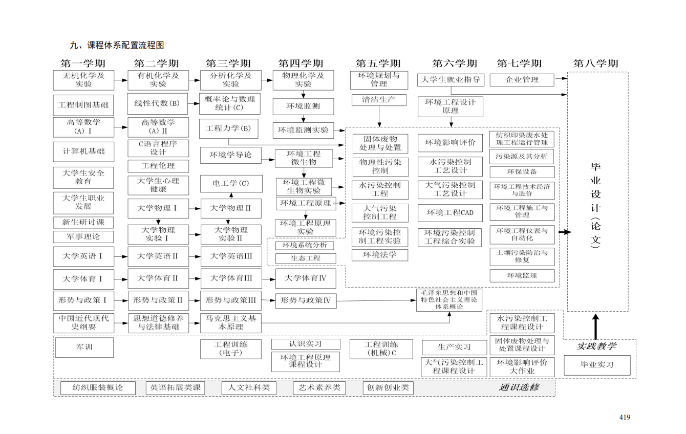 8.职业规范:具有人文社会科学素养、社会责任感,热爱环境保护事业,注重职业道德修养,能够在工程实践中理解并遵守工程职业道德和规范,履行职业责任。