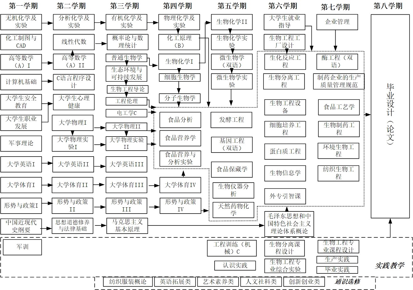培养目标2(行业专职能力):具备从事生物产品生产过程的专业知识和劳动生产技能,能胜任该领域的设计开发、生产技术、经营贸易以及科学研究等工作。