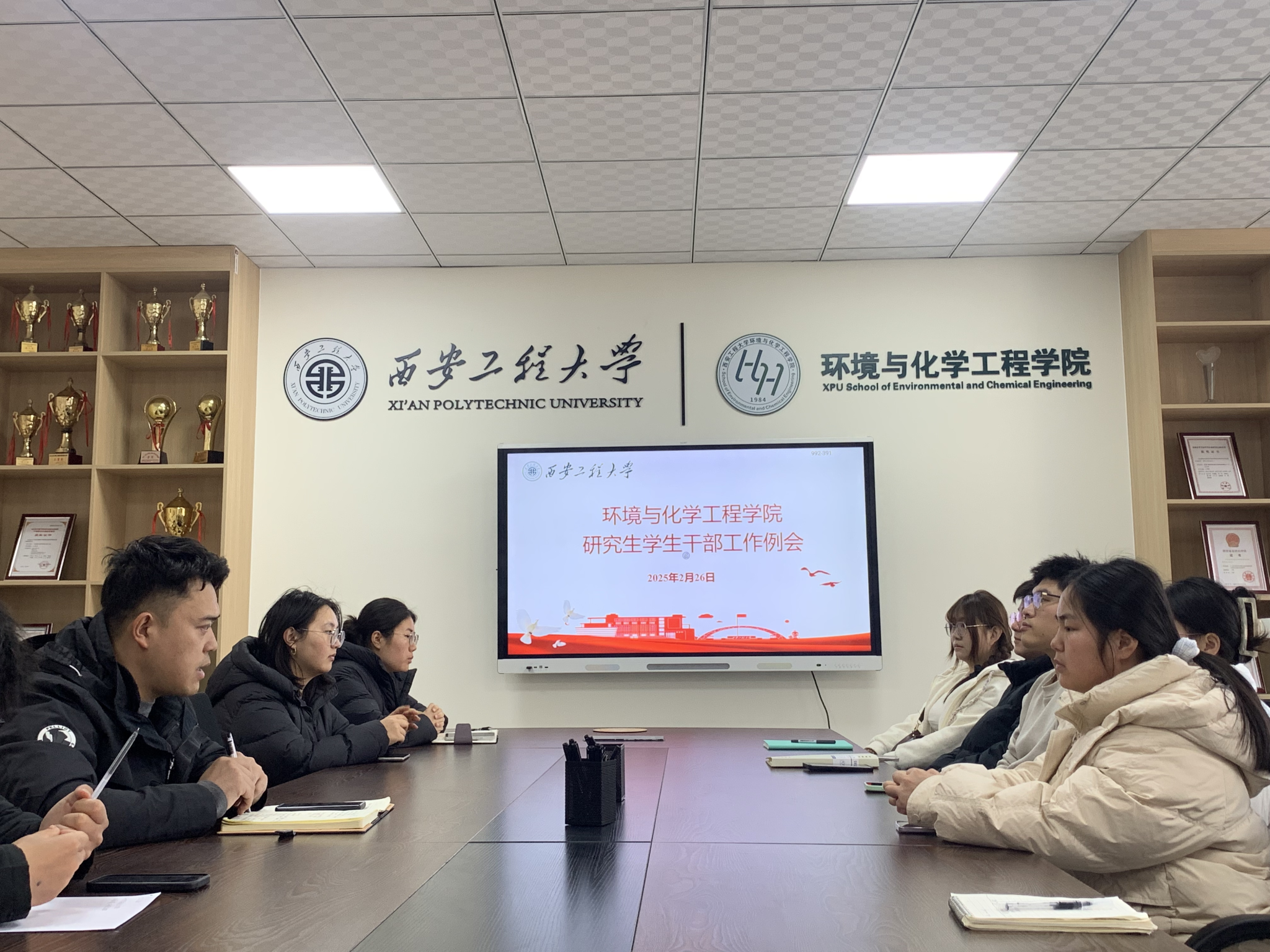 研究生工作顺利开展,2月26日,学院召开了研究生学生干部工作例会。研究生辅导员贾天昱、各班班委、研会主席团成员参加了此次会议。