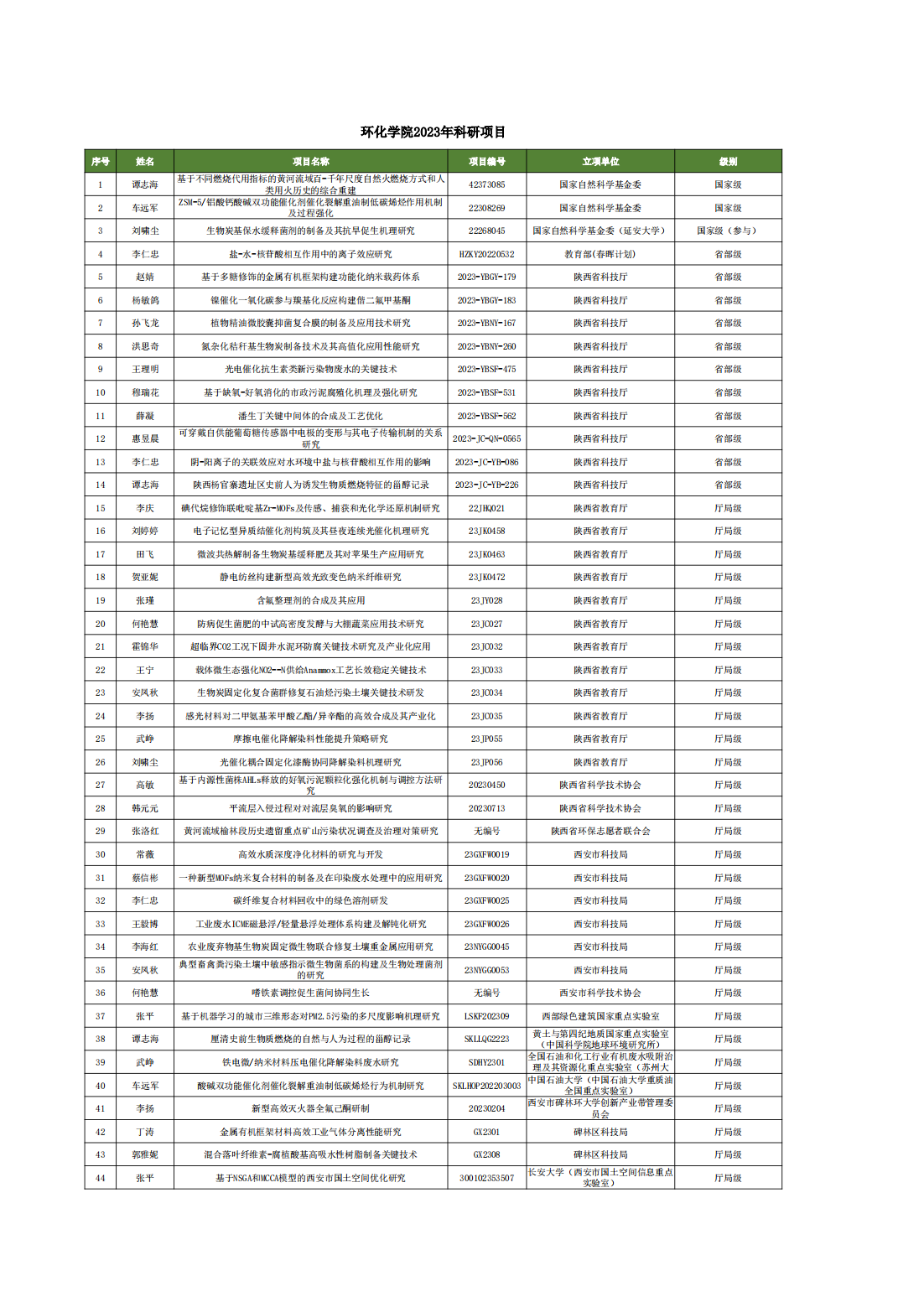 学院以创新能力和学科建设为重要抓手,大力提升教师科研创新能力,对各类纵向项目申报工作进行严抓组织落实,抓实抓细申报过程管理,组织专家进行多次指导,全方位提升教师项目申报书质量。通过推动教师把握申报各类纵向项目为契机,进一步推动学院内涵式发展,全力推进“十四五”规划和“一院一策”行动计划的贯彻实施。2023年科研项目取得了可喜的成果,新增纵向科研项目44项,其中国家级项目3项,省部级项目11项,厅局级项目30项,纵向到款经费位于我校首位,具体项目清单如下。