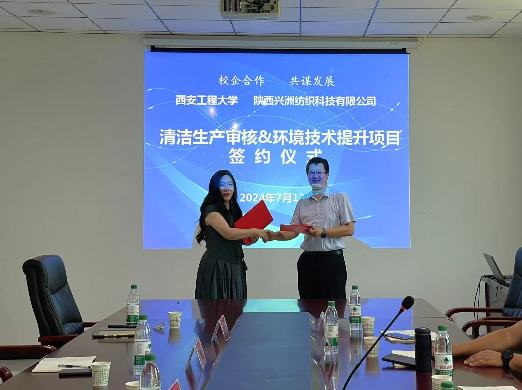 在校党政主要领导的关心指导下,学校教学科研相关职能部门的通力支持下,是落实学校“一院一策”,推进学院“十四五”发展规划实现预期目标,不断完善环境工程专业工程认证实践教学环节的一次重要实践。学校将以签约仪式为契机,进一步加深与陕西兴洲纺织科技有限公司的合作关系,积极从双方长远利益出发,以科技创新赋能学校事业高质量发展,为区域经济社会发展贡献科技创新智力服务。