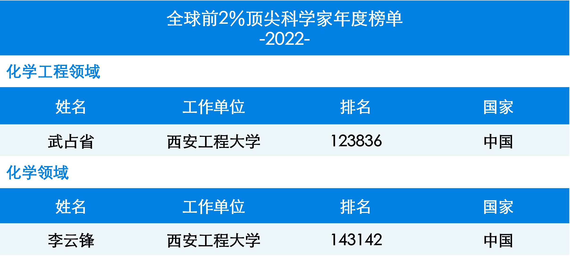 武占省教授、李云锋副教授入选。全球前2%顶尖科学家榜单由斯坦福大学与Elsevier旗下Mendeley Data合作发布,从全球近700万科技工作者中,遴选出世界排名前2%的科学家,包括了22个领域和176个子学科,涉及数学、物理学、材料化学、化学、信息与通信工程、药学等学科领域。该榜单为全球科学家的科研表现提供科学的衡量指标,客观、真实地反映科学家的国际学术影响力。