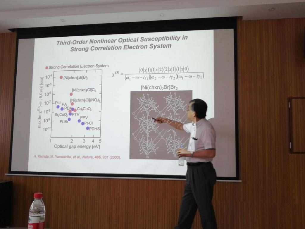 会议室做了题为“Nano-Wire Halogen-Bridged Pd(III) Complxees: Syntheses, Phase Transitions, and Charge Fluctuations”的学术报告。在报告中,他对其团队近几年研究的新型分子基磁性材料及纳米材料进行了深入浅出的阐述。报告过程中,Masahiro Yamashita教授简单介绍了日本东北大学,并欢迎有兴趣的同学申请去日本留学,并针对“What is science?”这一深刻话题与现场老师及学生进行探讨。GimyTV