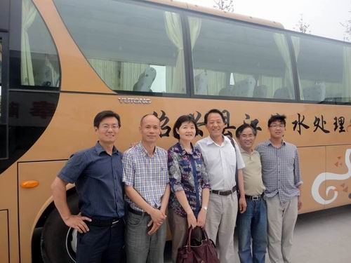在绍兴县水务集团及江滨水处理有限公司,考察团队就企业采取的工业污水集中处理技术、降低COD和色度等问题与企业进行了交流,并就共同研发污水处理装置达成了合作意向。