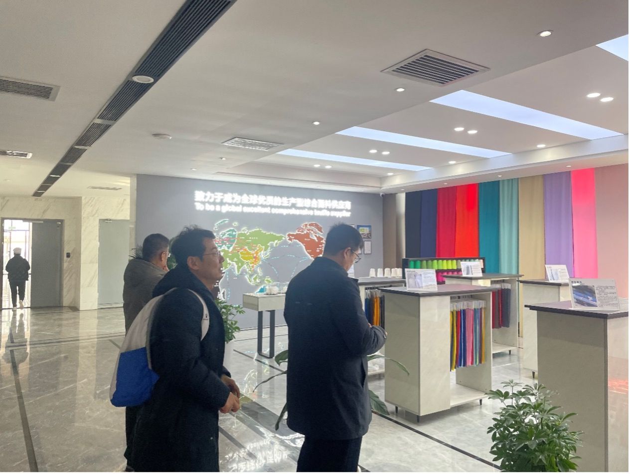 党委书记胡西民、主持工作副院长武占省教授、程刚教授、田飞博士与陕西省纺织行业协会会长严家民等一行走访调研了常兴纺织工业园。在常兴镇书记冯伟、镇长李小博的带领下,上午走访帛宇纺织有限公司,董事长赵利辉介绍该公司成立于2018年,引进技术先进的纺织配套设备,致力于高端衬衫面料的生产、研发、销售和服务,目前已与诸多国内外知名服装品牌企业建立了长期战略合作关系。经营范围包括:纺纱;织布;布袋加工、销售;高科技纺织面料的研发、设计、生产、销售;纺织原辅材料、纱线、坯布、漂白布、印染布、服装面料、布料包装袋、纺织机械及零配件销售及出口业务。下午来到陕西兴洲纺织科技有限公司,周秦伟董事长介绍公司是一家以纺织产业为主,多元拓展的股份制企业,公司拥有自营进出口经营权,同时还是中国人民解放军总后勤部军用服装面料定点生产企业,配备了先进、高端的生产设备,是西北地区规模最大、设备最先进的服装面料生产基地。