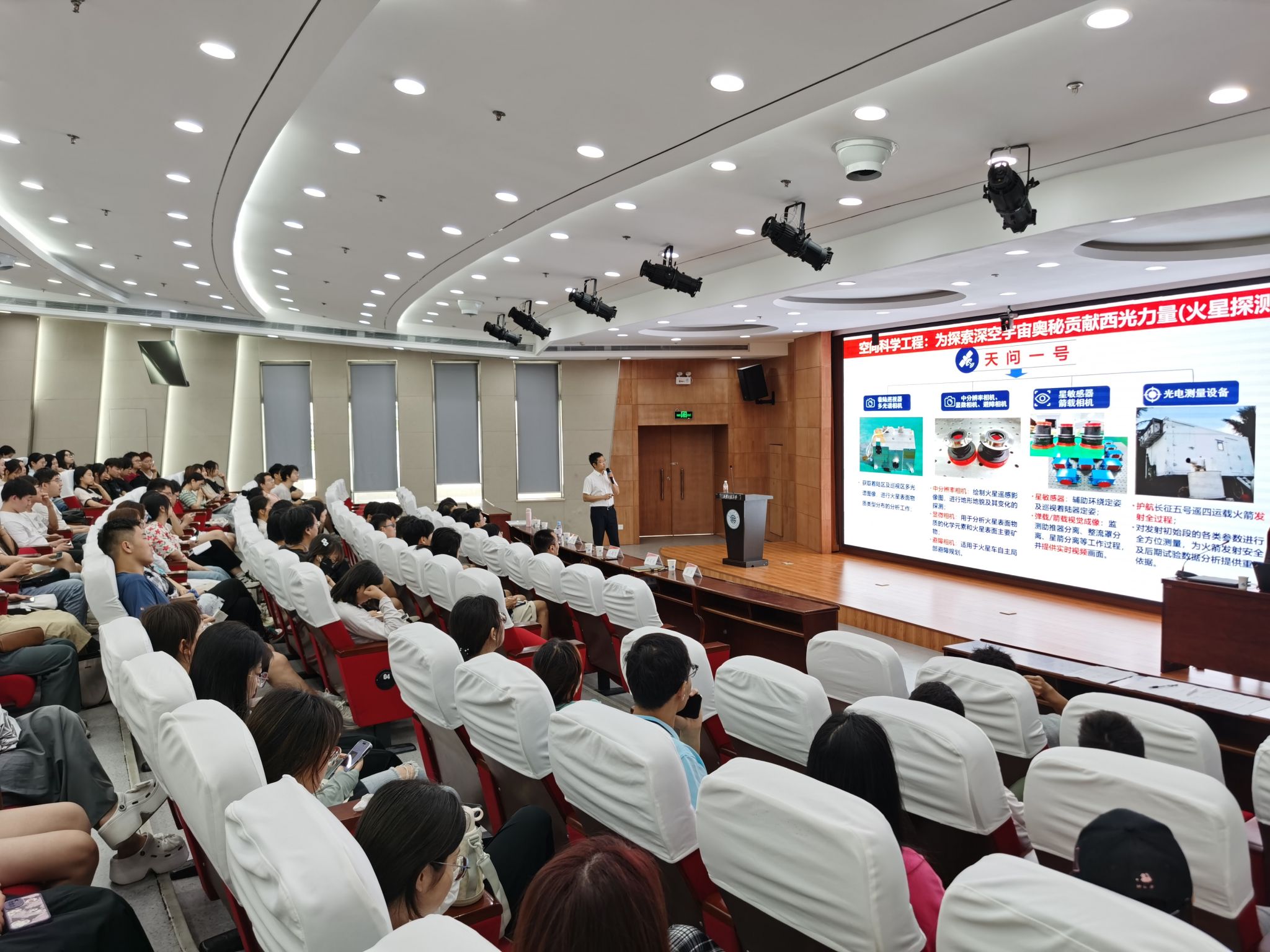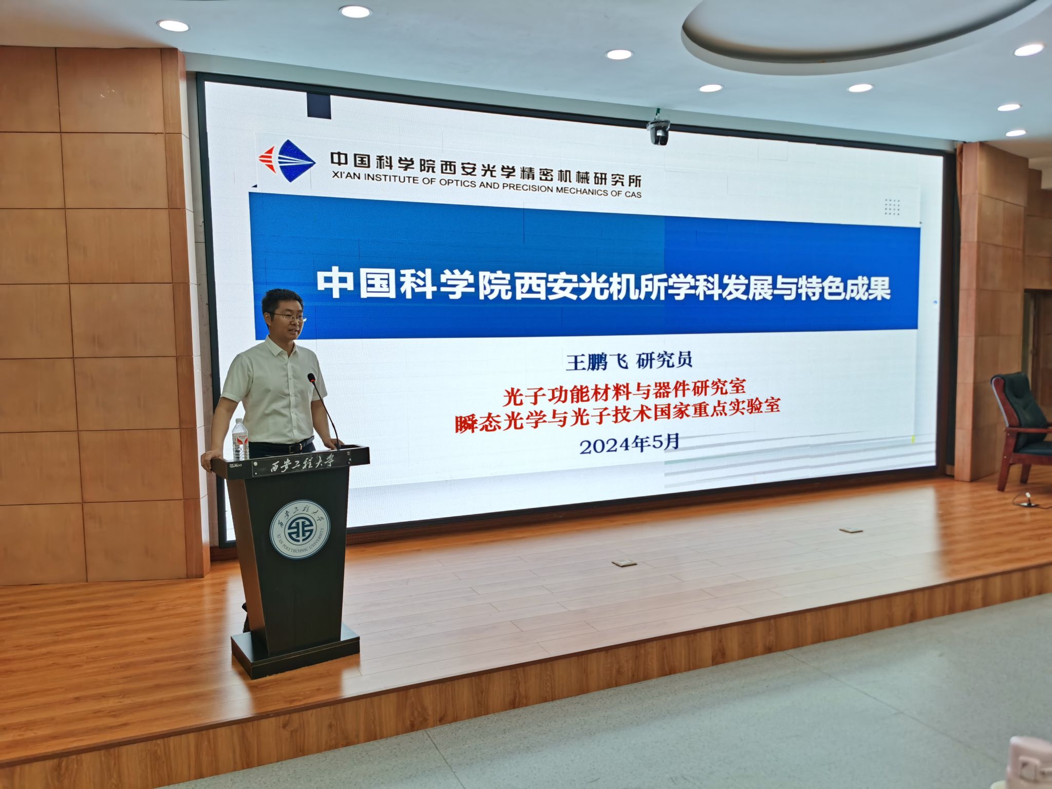 王鹏飞研究员分别从西安光机所学科发展与特色成果、光子材料室的材料学科发展历程、科研平台建设、重要进展与成果、学生培养与就业等方面做了详细介绍。他表示西安光机所材料学科主要围绕先进光子功能玻璃、特种石英光纤、中红外光纤及器件、特种聚合物光纤及器件的制备及其应用技术开展相关的基础研究与应用开发。他指出西安光机所作为科研的“国家队”,瞄准解决我国关键材料面临的卡脖子问题,勠力实现关键核心技术突破;积极助力“国家事”,凝心聚力为工程领域创新提供核心材料和器件支撑;抗实“国家责”,持续加快发展新质生产力,为实现陕西乃至国家高水平科技自立自强贡献“西光力量”。王鹏飞还与师生亲切互动,围绕老师、学生关心的升学、就业等问题进行深入解析。参会的师生纷纷表示本次讲座干货满满,收获很大,拓宽眼界的同时对个人的教学科研和未来发展有了新思路。