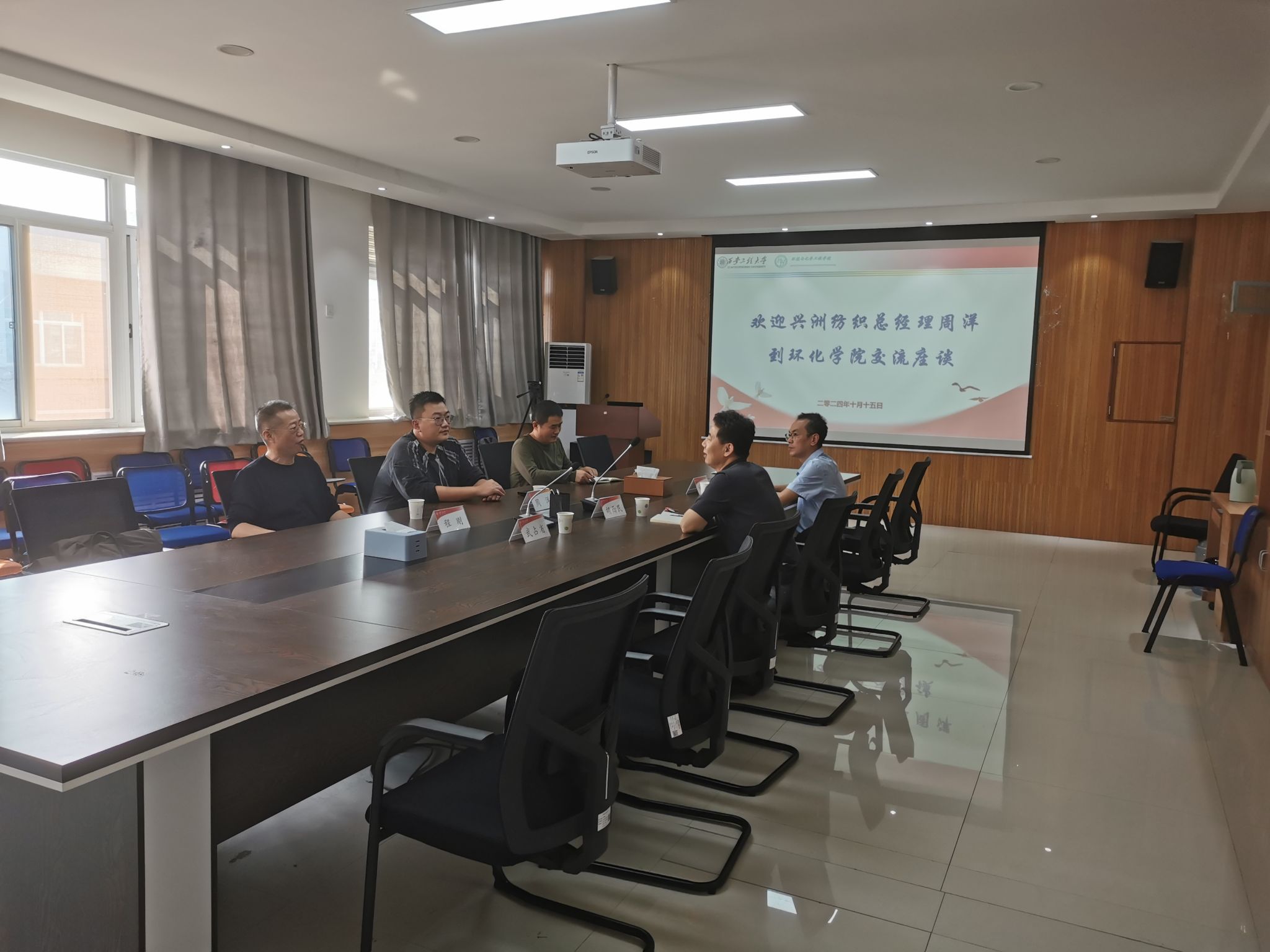 2024年10月15日,兴洲纺织科技有限公司总经理周洋携公司技术主管来访,与程刚教授及环境技术研究&应用团队就兴州纺织清洁生产审核相关问题进行了沟通交流,双方就推动加深双方产学研合作达成了共识。GimyTV 党委书记胡西民、副书记林定武、环工系副主任王理明、程刚、于翔、刘钊老师参加座谈会。