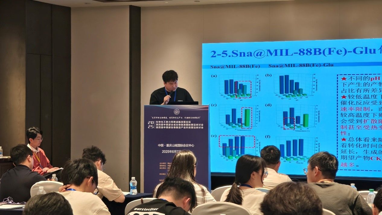 武占省教授在"非粮原料生物转化与产品工程"分论坛,作《基于MOF固定化酶催化转化稀有人参皂苷研究》主题报告,系统的呈现了团队深耕多年的固定化酶催化转化稀有人参皂苷的研发技术突破,并与参会专家进行了充分的探讨和交流。