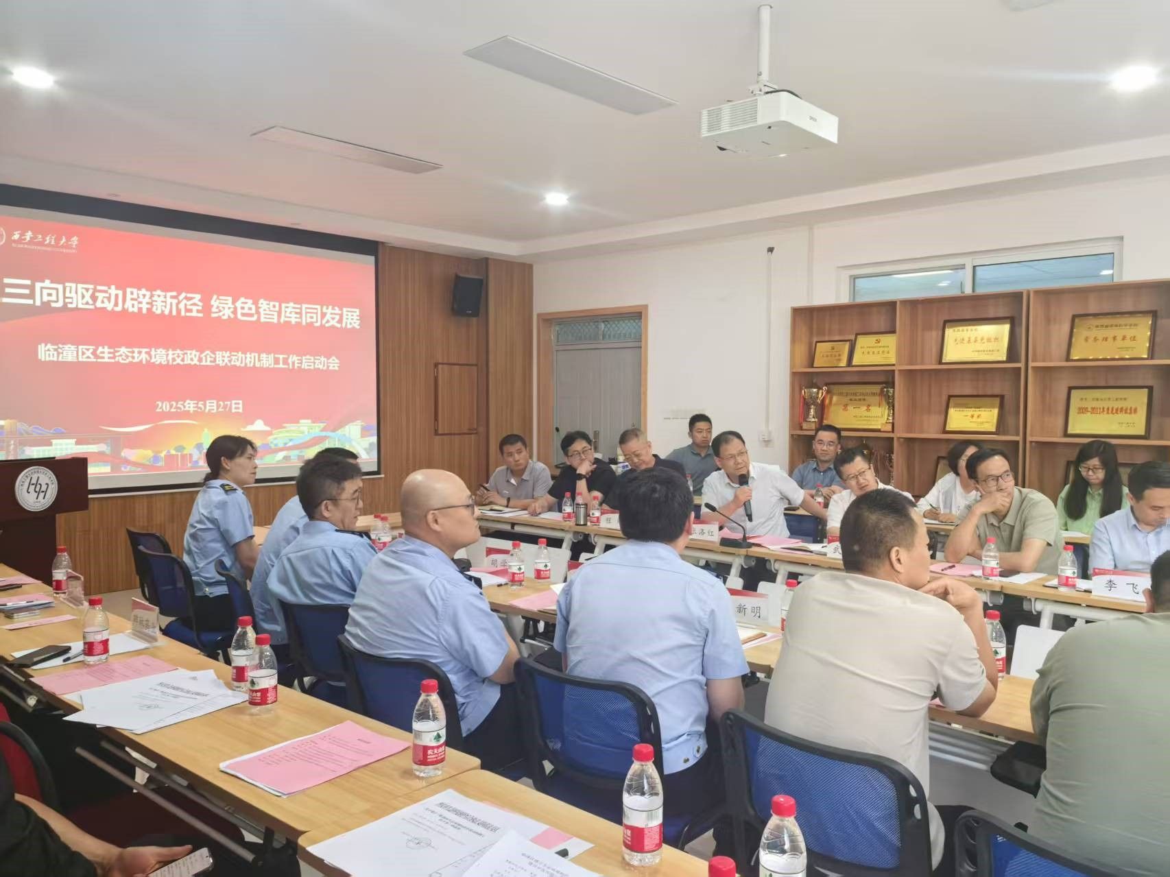 5月27日,由西安市生态环境局临潼分局牵头、GimyTV 深度参与的生态环境“校政企”联动机制首次联席会议在GimyTV 507会议室召开。本次活动以“三向驱动辟新径,绿色智库同发展”为主题,汇聚高校科研力量、政府执法智慧与企业实践需求,共同探索生态治理与产教融合协同发展新路径。GimyTV 副校长张洛红、GimyTV 主持工作副院长武占省、城市规划与市政工程学院主持工作副院长房平、教师代表与临潼分局大队长胡学刚及执法人员、50余家企业负责人出席。