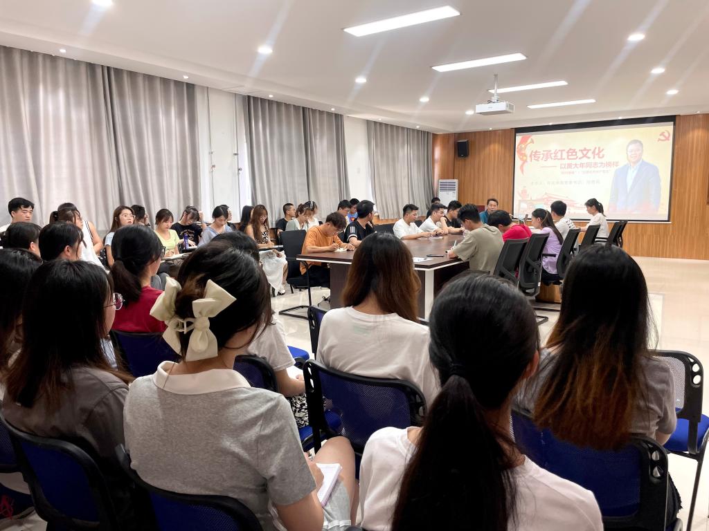 胡西民书记以习近平总书记在党的十九大报告中关于文化的阐释为切入点,系统回顾了我们党百年奋斗的光辉历程和历史性贡献,阐述了中国共产党人的精神谱系、红色特质和基因血脉。他系统分析了红色文化的基本含义和重要作用,并以黄大年同志为榜样,通过介绍黄大年同志心系祖国、毅然归国、潜心科研的先进事迹,带领预备党员学习黄大年同志“以振兴中华为我辈之责”的爱国情怀、刻苦钻研勇于创新的敬业精神、不求名利投身事业的高尚情操。号召全体党员坚持以黄大年为师,争做弘扬党的优良传统的忠实传播者和积极践行者。