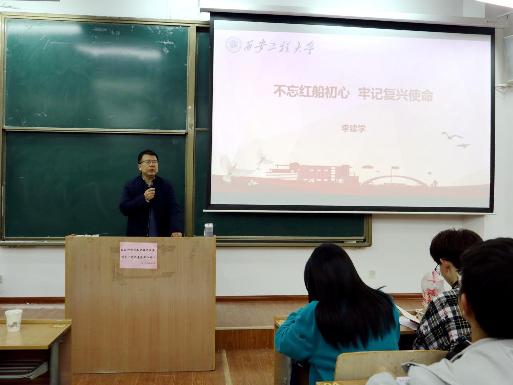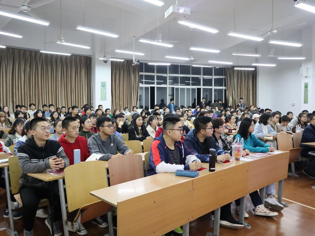 党委书记李建学以“不忘红船初心,牢记复兴使命”为主题,为第七期初级党课培训班学员讲授专题党课,学院党委副书记赖斌、全体辅导员及入党积极分子聆听党课。