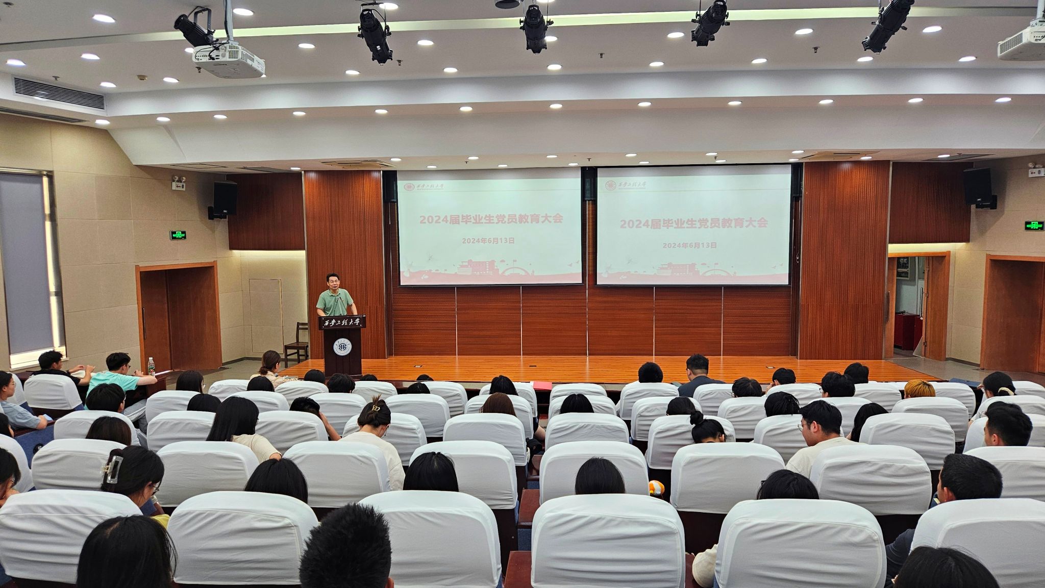 为进一步加强毕业生党员的党性教育,激励全体毕业生党员坚定信念、胸怀祖国,牢记党员责任、脚踏实地、担当作为,以良好的精神风貌踏入新的征程。6月13日,学院党委召开全体毕业生党员教育大会,学院党委书记胡西民、兼职组织员刘婧、毕业生辅导员张易泽及全体毕业生党员参与。