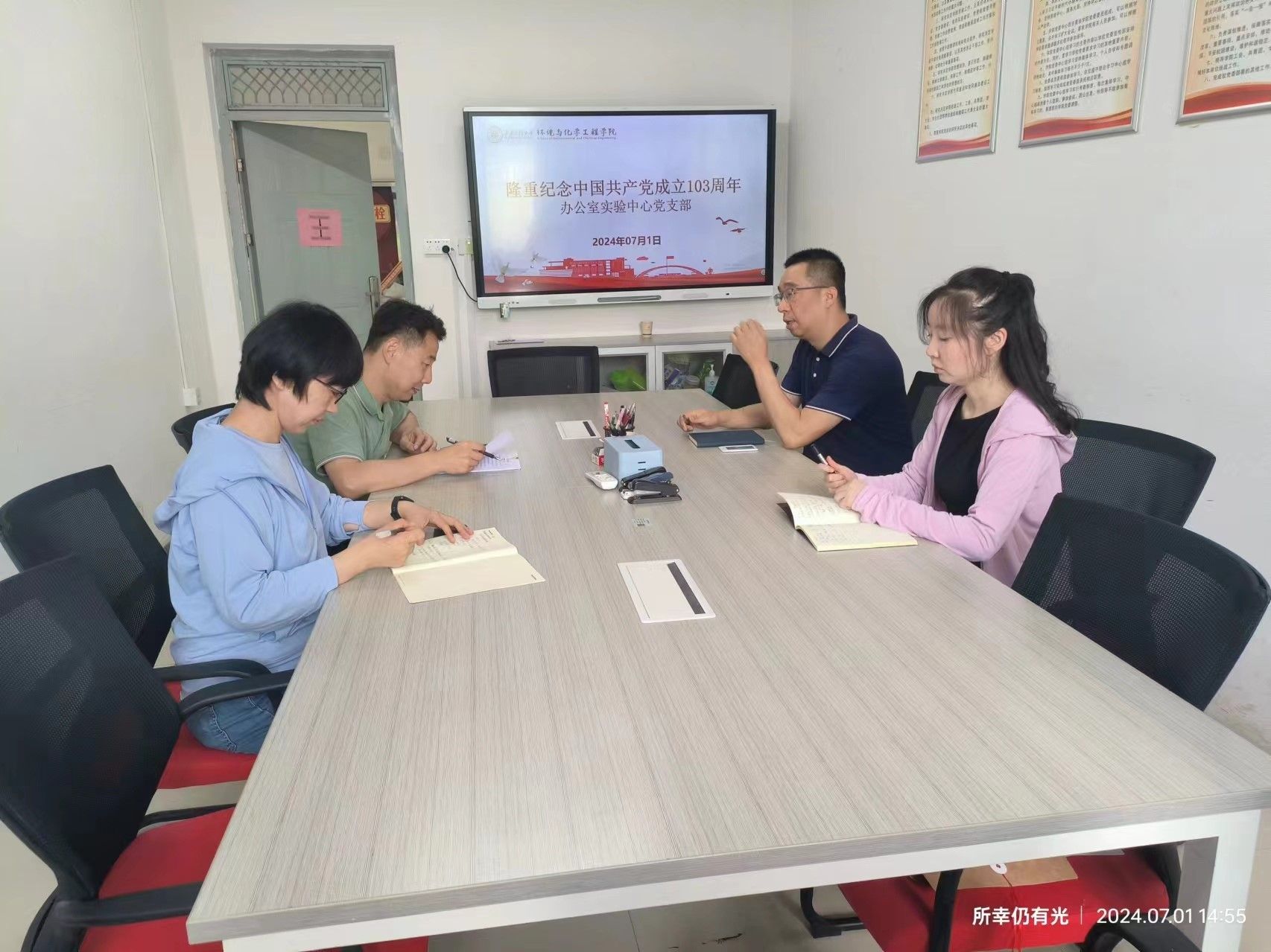 为深入贯彻党的精神,加强党组织建设,提升党组织的凝聚力和战斗力,7月1日下午,学院办公室、实验中心党支部召开纪念建党103周年专题组织生活会。