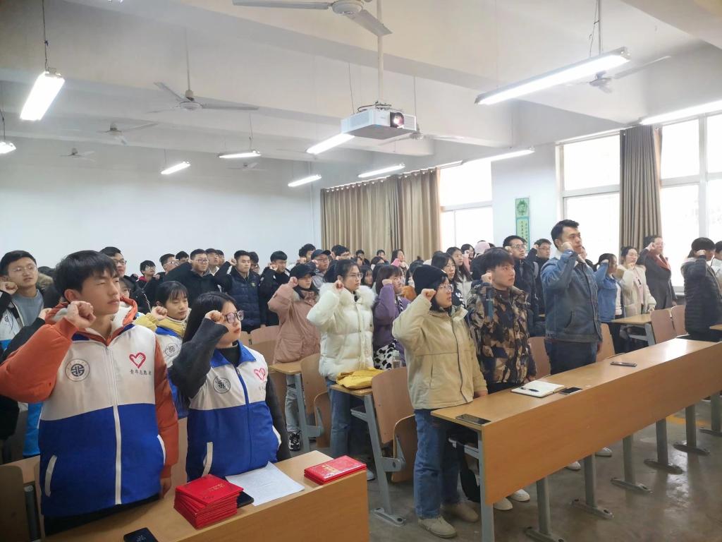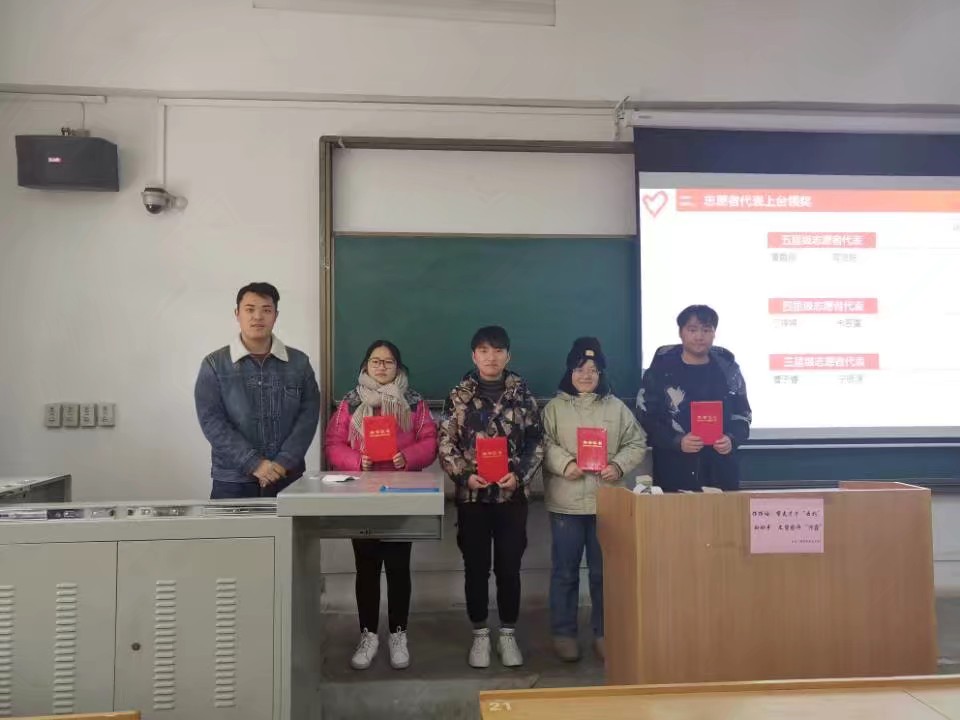 青分队于教学楼A-132召开志愿者入退队仪式暨表彰大会。团总支书记贾天昱及学院青分队全体志愿者参加本次活动。