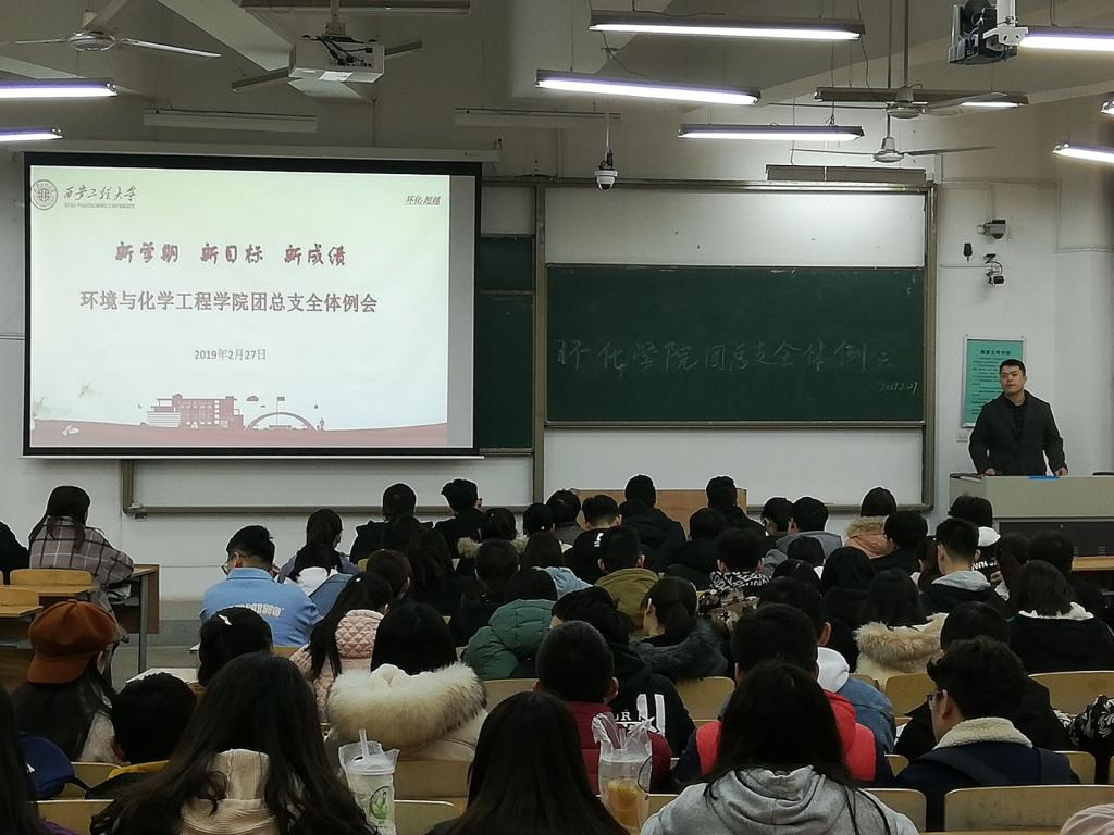 团总支在临潼校区B栋133教室召开新学期第一次全体例会。学院团总支、学生会、科技协会、“绿风”环保协会、化学趣味社、译心心理社、弘毅励志社、生命之树社团全体成员出席会议,会议由学院团总支书记贾天昱主持并讲话。