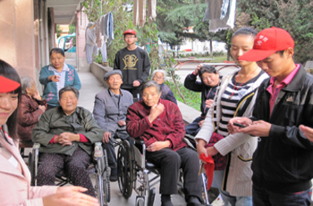 在活动中,同学们帮老人洗脚、剪指甲,还唱起了《东方红》、《感恩的心》等歌曲,现场其乐融融,活动渐趋高潮。在同学们即将离开时,敬老院负责人感谢同学们为老人带来爱和感动。