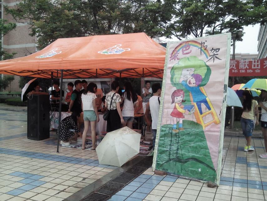 6月13-26日,“绿风”环保协会在临潼校区人文广场举办了“绿色书柜”活动,意在将学生用过的教科书回收整理,然后再次借给需要的学生,循环使用,节约纸质,让有限的资源发挥最大的作用。为了能收集到更多的图书,我们在大四即将离校之际进行回收。