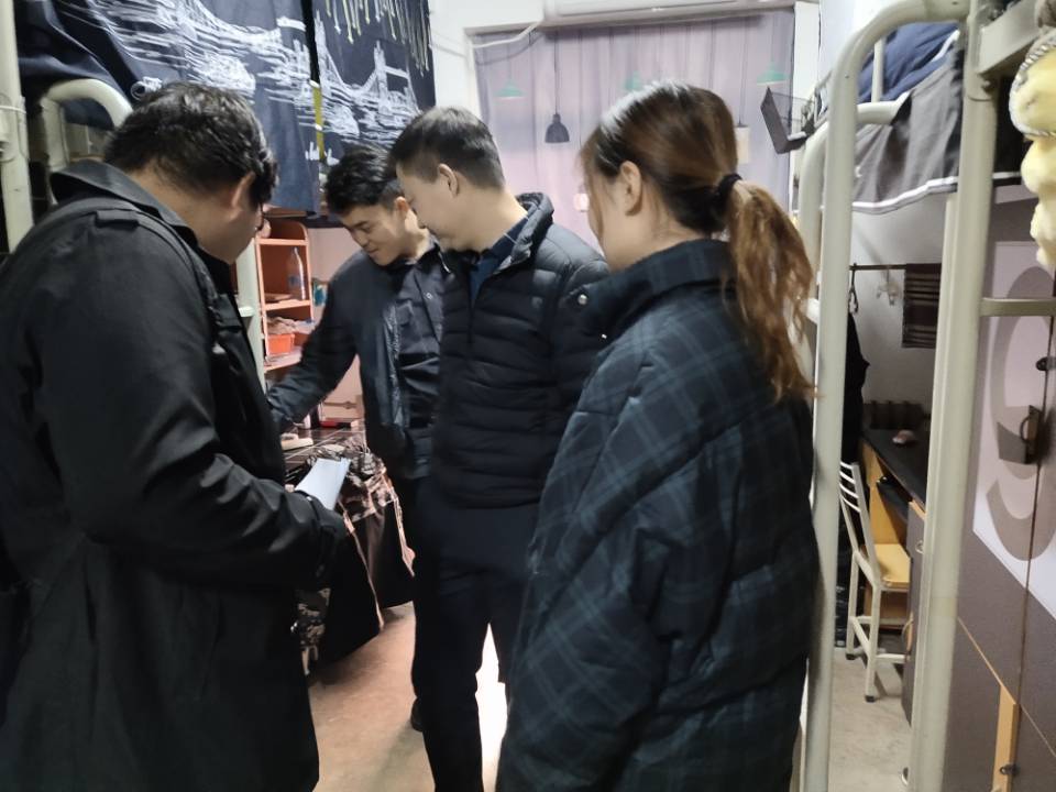 赖斌首先对本次评比的工作人员提出了要求,着重强调了活动的公正公开性,并对冬季学生宿舍的安全隐患及检查重点做了部署。在随后的检查过程中,赖斌鼓励同学们要团结互助、共同进步,营造良好的宿舍环境,以舍风促学风。辅导员和学生会工作人员仔细检查每一间宿舍,并特别强调了宿舍管理相关规定。经过评比,最终5#B602宿舍获得一等奖,3#B413、3#B603宿舍获得二等奖,5#A201、6#B207、9#A301宿舍获得三等奖。