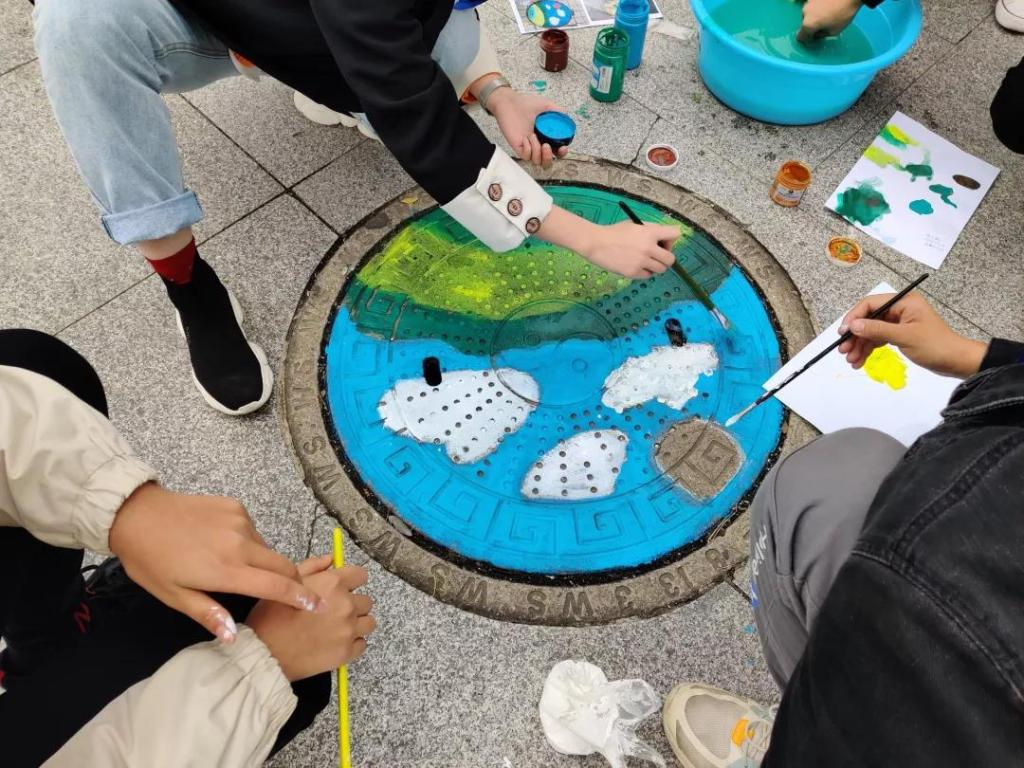 绿风环保协会的成员与志愿者们共同在校园内进行“手绘多彩井盖,献礼二十周年”活动。井盖绘画通过有序的小组分工,在负责人的带领下奔赴校园各处井盖进行绘画。在绘画结束后,由绿风环协人员进行材料回收并验收井盖。