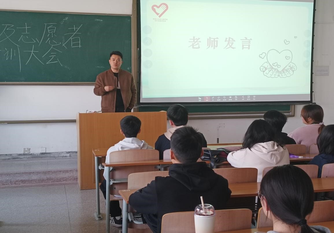 青年志愿者协会于3月28日在教学楼D-384开展班级志愿者培训大会,学院团总支书记贾天昱和各班新生班级志愿者参加本次大会,大会由吴柯、王梦玥主持。