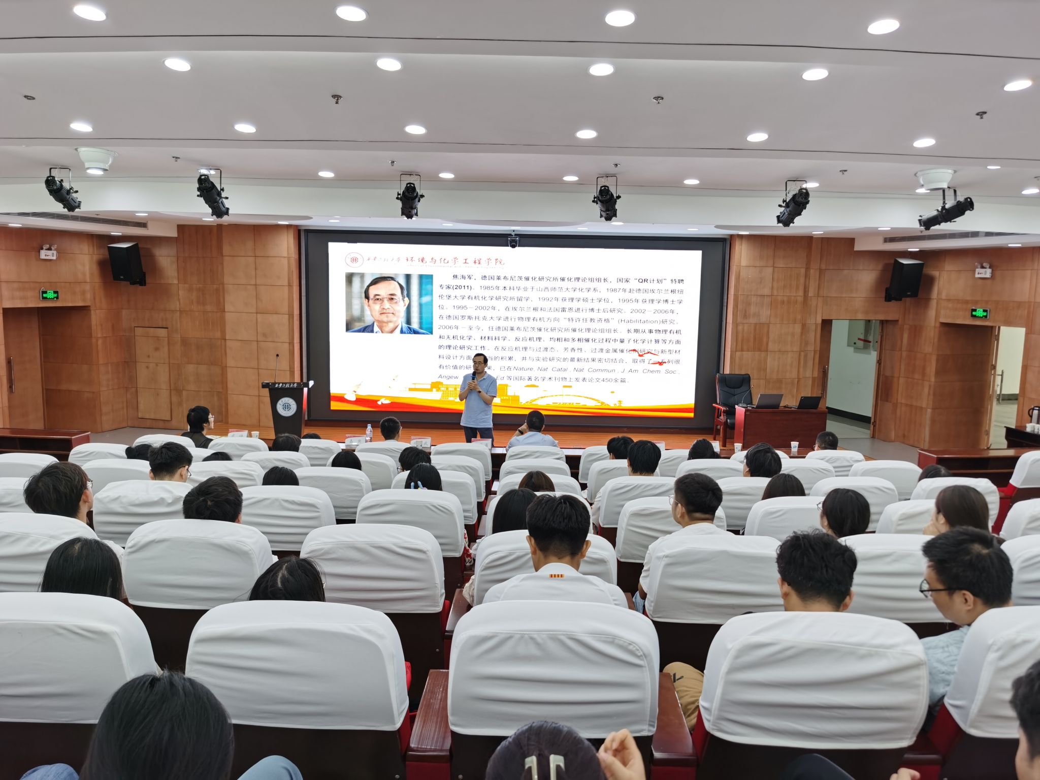 焦海军教授首先和与会师生分享了海外学习工作经历,介绍了近几年德国留学政策和高等教育现状,鼓励广大青年勇敢走出去,开拓视野、增长本领。报告会上,焦海军教授基于近几年来围绕金属钳式配合物的催化性能开展的系统性研究工作进行深入阐释,并通过大量的理论计算数据阐明了以铁、锰、钌等为中心离子的钳式配合物催化剂在加氢、脱氢、氢转移反应过程中的性能差异的本质原因,证明了理论计算和实验设计之间相互印证的关系,说明理论计算已经成为化学反应机理研究过程中一种必不可少的表征手段。会后,焦海军教授与现场师生进行了热烈互动,交流了有关就业、专业学习与个人发展等问题。