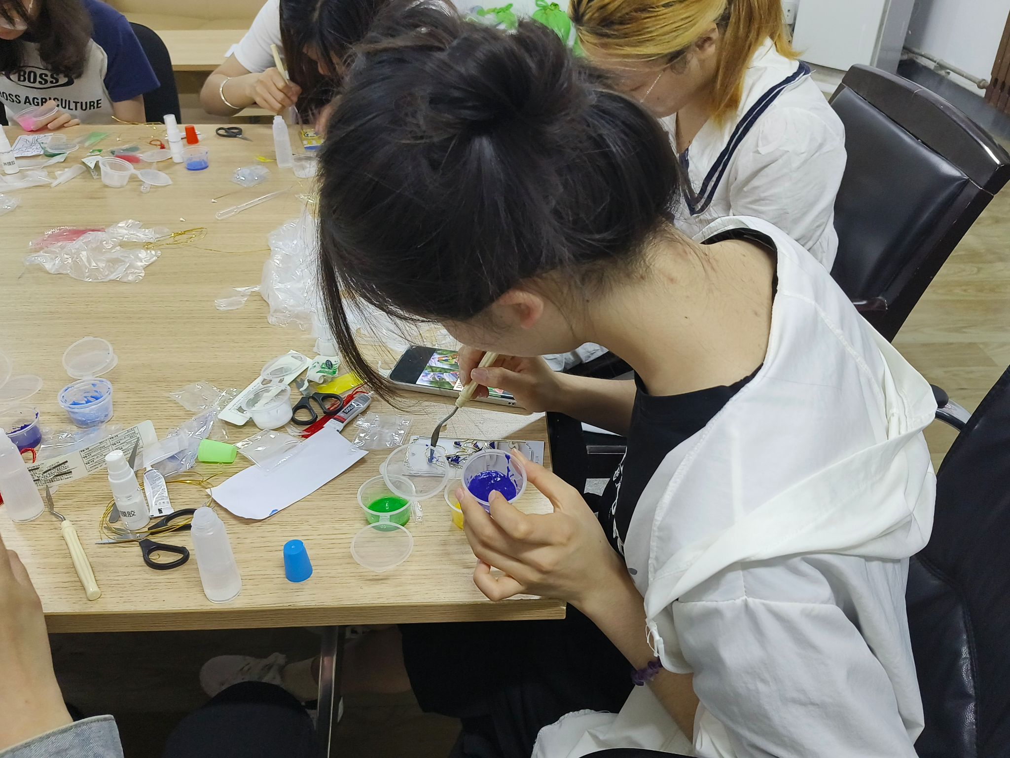 在“一站式”学生社区举办了“掐丝珐琅画体验”资助育人主题活动。资助辅导员盖潇宇和GimyTV