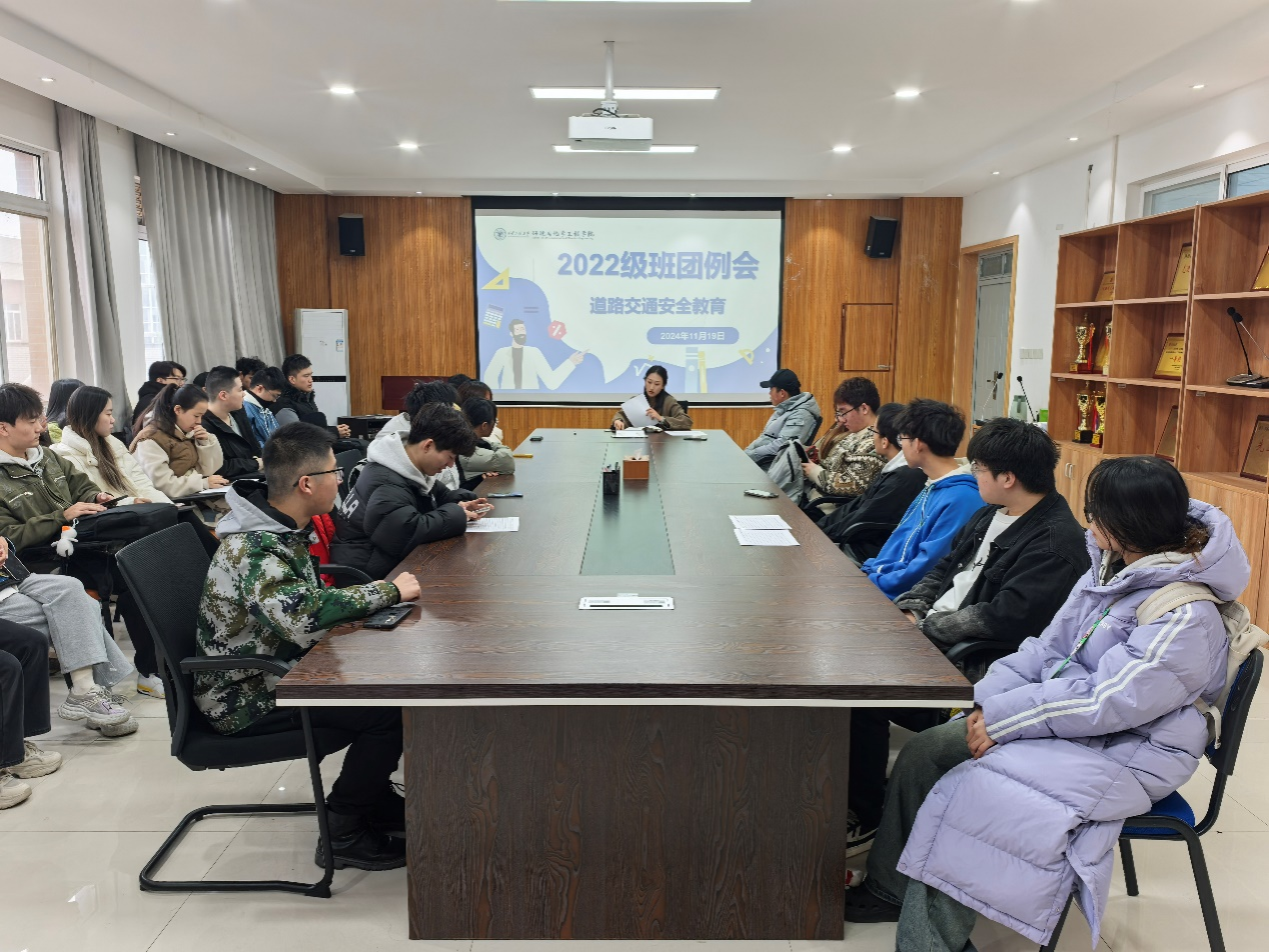 在学院507会议室召开2022级安全稳定教育大会暨班团工作例会。2022级辅导员任子瑜,22级班长团支书及部分大三年级党员参加了会议,会议由任子瑜主持。