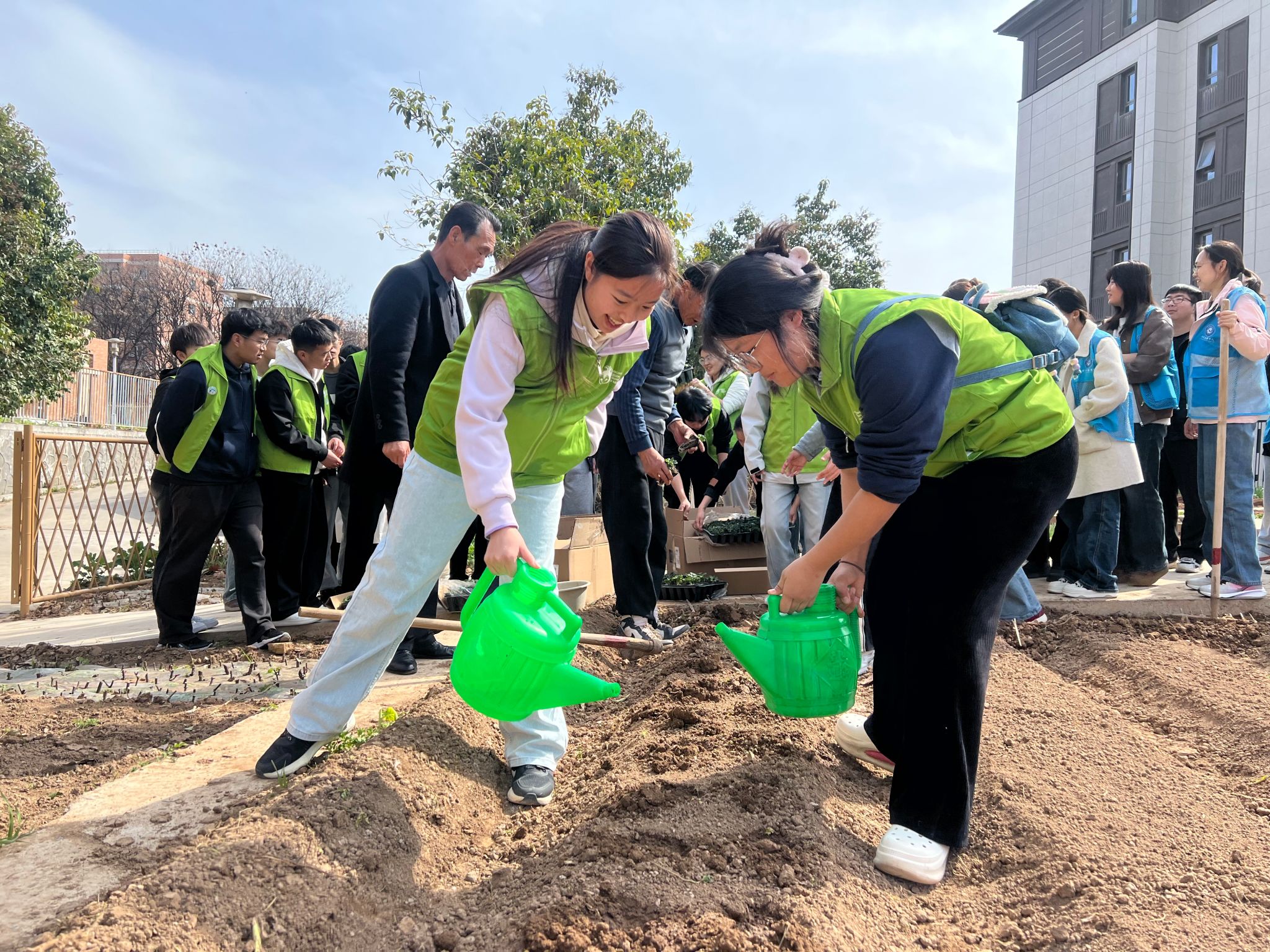 在临潼校区“耕读小园”大学生劳动实践教育基地开展了“春日播绿”草莓种植劳动实践活动,活动组织30余名受助学生参与。