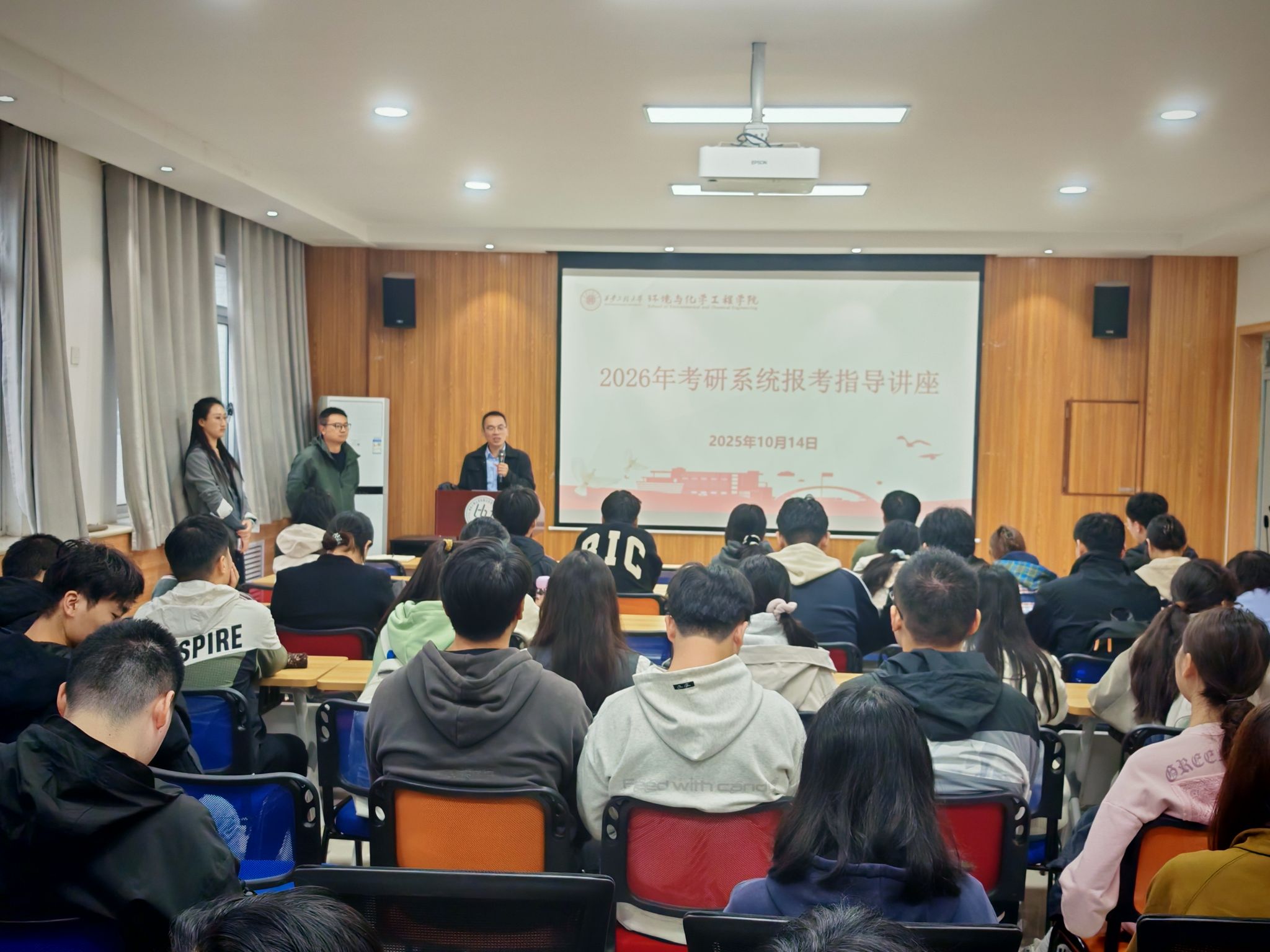 在学院507会议室成功举办了2026届考研学生报考指导讲座。本次讲座由学院院长助理、化工系主任刘斌副教授主讲,学院党委副书记林定武主持,学工办主任朱瑾、2022级辅导员任子瑜及大四年级考研学子共同参加了此次会议。