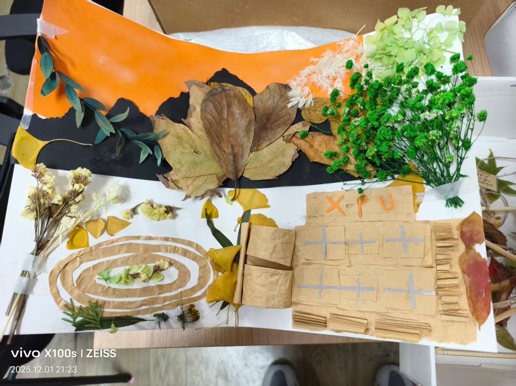 活动共设置手工制作与vlog拍摄两大参与板块。同学们利用校园内收集的落叶,精心制作成书签、拼贴画、装饰画等各类手工作品;同时,也有参与者以vlog形式记录秋日风光、创作过程或个人感悟,生动展现秋日校园的缤纷色彩与温馨时刻。