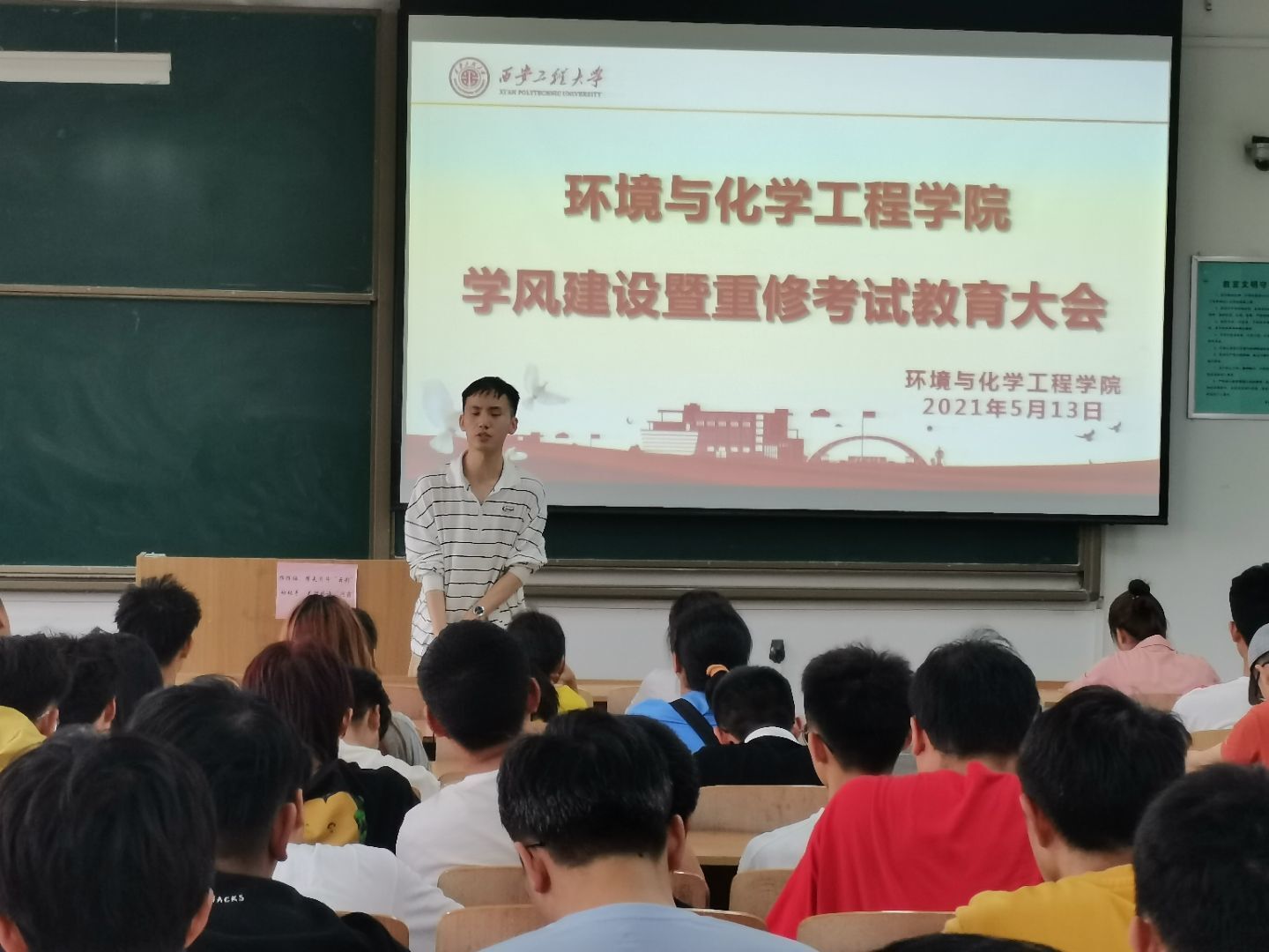 于5月14日晚在教学楼A-304教室举办“学风建设暨重修考试教育大会”。参加本次大会的有2020级辅导员张易泽,以及17、18、19、20级参加重修考试的同学。