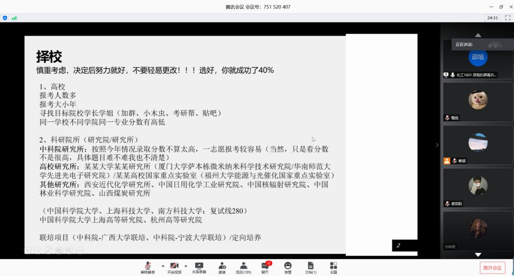 本次线上交流会的召开有利于同学们树立正确的考研观,更好地掌握考研备考技巧,增加同学们考研的信心,从而有效提高备考效率。(撰稿:刘婧、甄悦 审核:李建学)