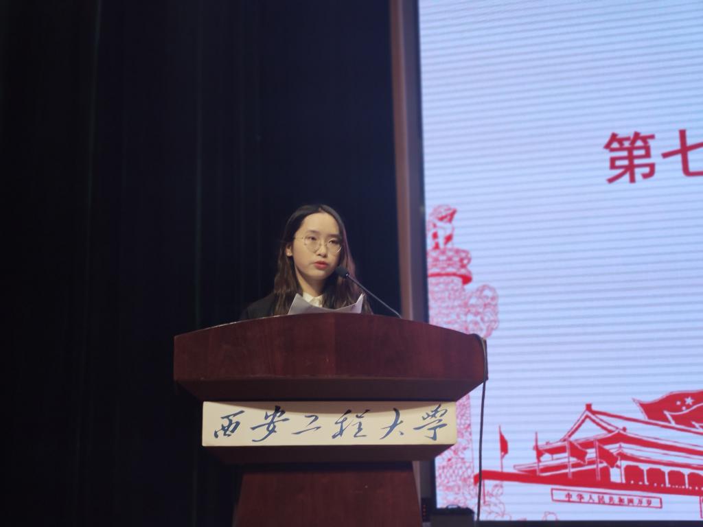 2018级环境科学1班王雅婷同学作为优秀学生代表发言,她首先感谢学院对她的培养,随后从自身经历出发向同学们分享学习经验、学习方法与学习计划,并代表此次受表彰的同学们表态,要将优秀作为一种品质,坚持不懈、努力拼搏,为学院的发展贡献力量。