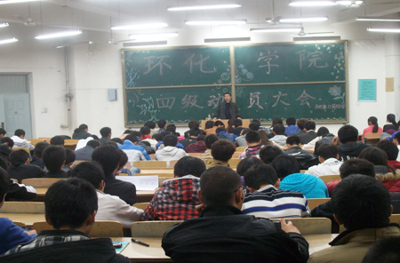 四级考试动员大会,林定武老师主持会议, 10级全体同学参加了本次会议。