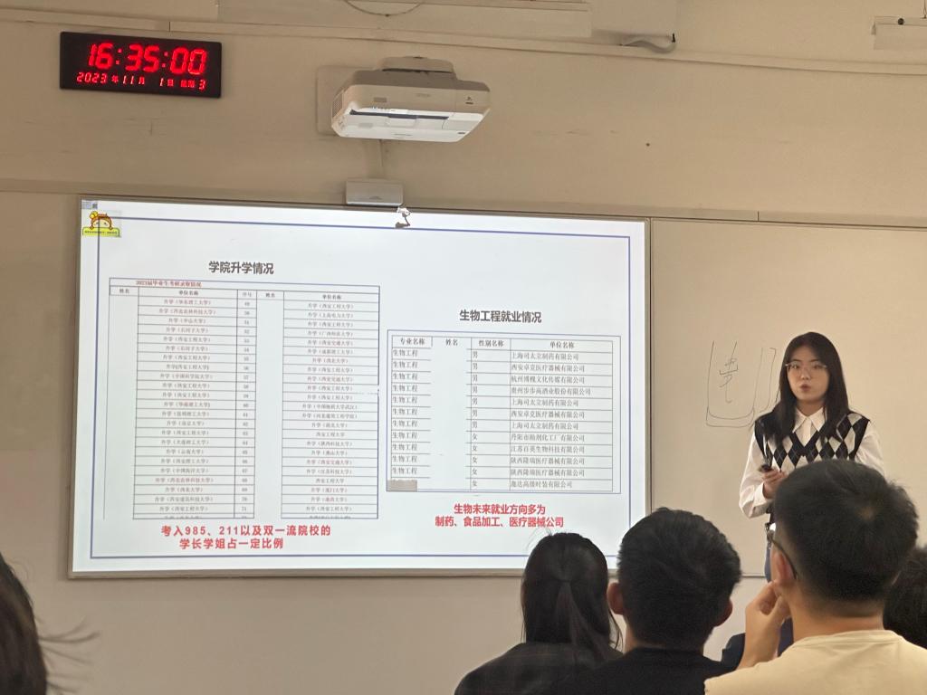 会上,胡西民强调,作为新时代的青年学子,要有理想、有信念、有担当,勇于创新、敢于实践、乐于奉献。他希望同学们能够借鉴学长学姐的成功经验,进一步提升对生物专业的认知,结合自身情况做好学业规划,在规划中找准自己的定位和方向,在不断地探索和进步中实现自己的价值。