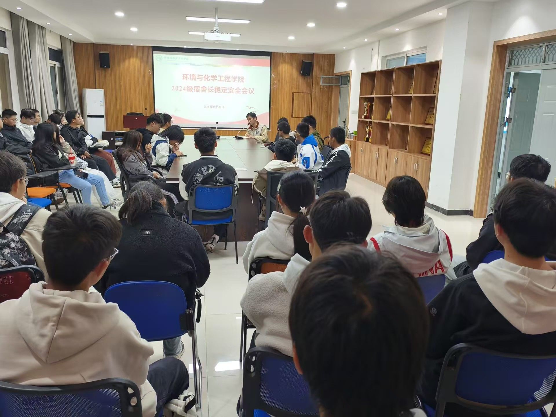 于10月30日晚在学院507会议室召开2024级宿舍长会议,辅导员张易泽主持,全体宿舍长参加。