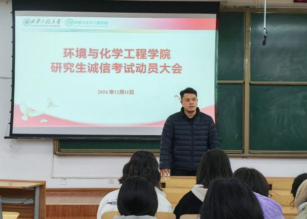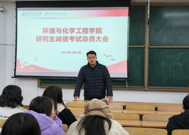 于12月11日在教学楼B133教室召开研究生诚信考试动员大会。本次会议由学院团委书记、研究生辅导员贾天昱主持。