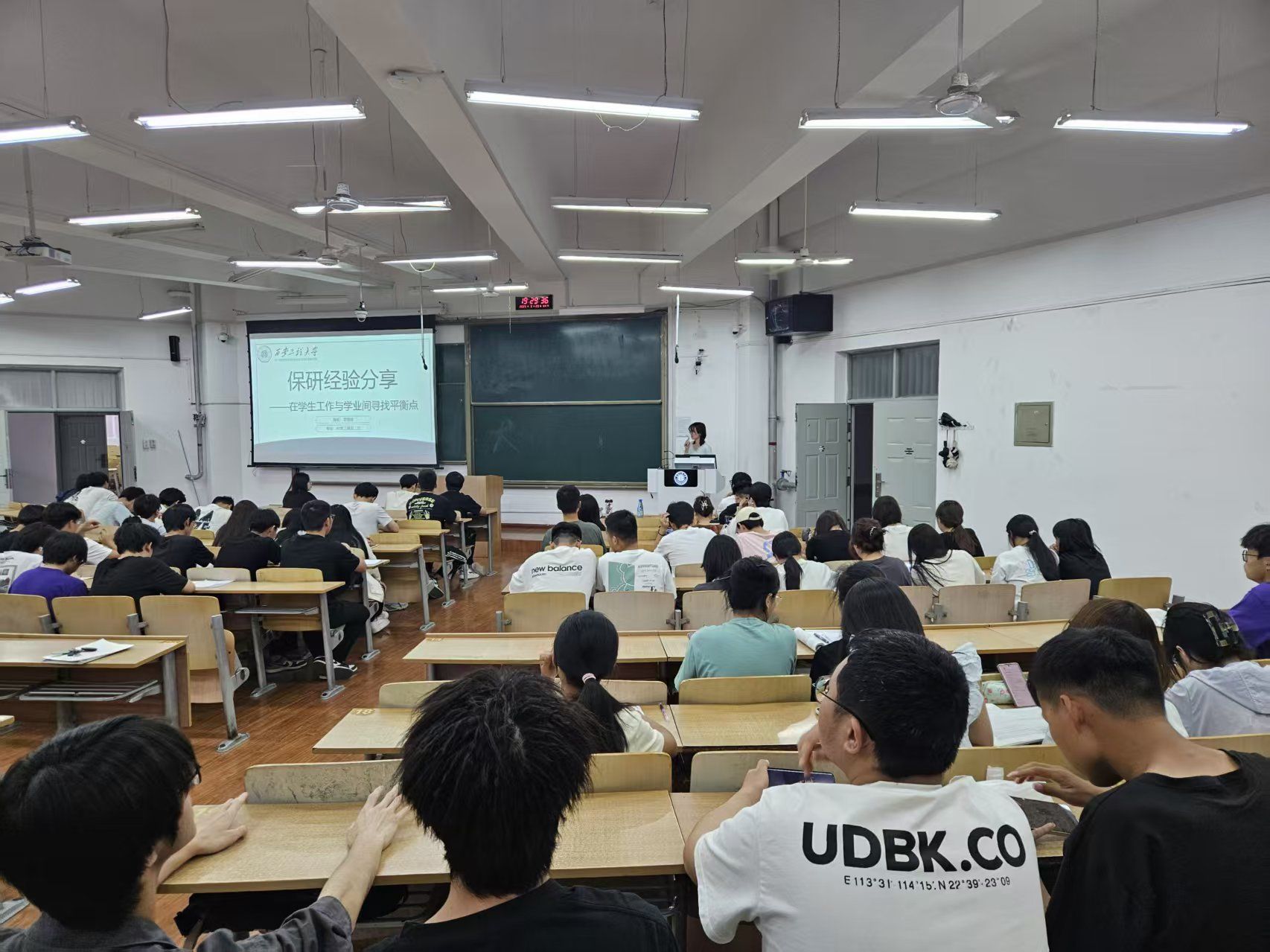 活动聚焦学风建设,邀请多位优秀学子分享经验。环境工程专业汪蕊同学以“科学规划+高效执行”为题,系统介绍了备考南京大学研究生的方法与心得,为同学们树立了学业榜样。陈聂同学以“双线成长,逐梦领航”为题,结合担任学生会主席的经历,介绍了“四象限时间管理法”和“任务优先级矩阵”,通过实际案例展示分享了如何高效平衡学生工作与考研复习,为在场同学提供了实用的时间管理方案。