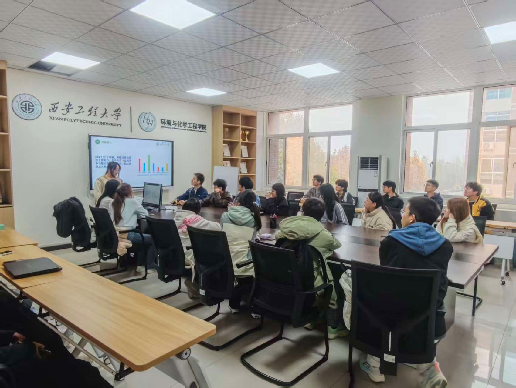 分享会上,三个优秀班集体代表结合本班实际情况,依次展开交流。24级环境工程1班、4班作为大二班级,重点介绍了班级组建以来的班风培育、班委职责分工及初期学风建设举措,通过主题班会、学习小组互助等方式凝聚班级力量;23级生物工程2班则聚焦高年级班级发展特点,从学业帮扶机制、学科竞赛参与、志愿服务开展等方面展示班级建设成果,详细阐述了如何通过精准施策筑牢学风根基、激发班级活力。展现出扎实有效的班级管理方法和积极向上的集体风貌。现场气氛热烈,掌声不断。