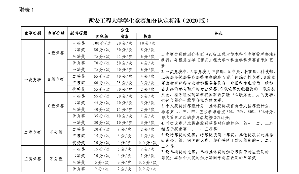 学生竞赛加分认定标准(2020版)