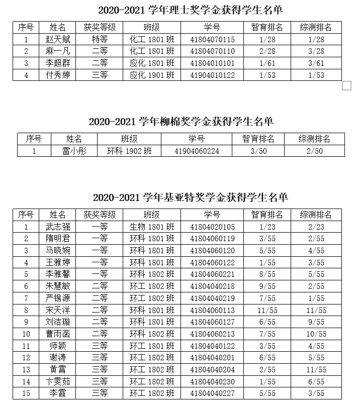 国家奖学金管理规定》及《关于开展2020-2021学年各类社会专项奖学金评审工作的通知》相关要求,本着公平、公正、公开的原则,经学生申请,年级推荐等程序,经学院资助工作领导小组会议研究决定,拟推荐赵天赋等4位同学为2020-2021学年理士奖学金获得学生,雷小彤同学为2020-2021学年柳棉奖学金获得学生,武志强等15位同学为2020-2021学年基亚特奖学金获得学生。具体名单见附件,公示时间3天(2021年10月13日-2021年10月15日)。