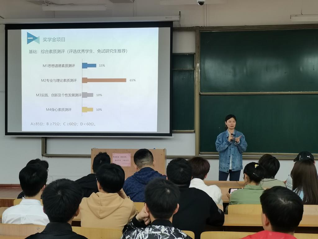会议初始,刘婧对我校学生资助工作做出介绍。随后,她详细讲解了综合素质测评的具体评定内容及评定标准,同时介绍了各奖助学金的评定细则、要求以及国家生源地信用助学贷款的相关注意事项。紧接着,张明佳为同学们具体介绍各奖助学金申请表的书写及所需要提供的材料。会议最后,部分同学就本次会议的部分内容提出疑问,刘婧及张明佳对同学们的问题做出针对性解释。