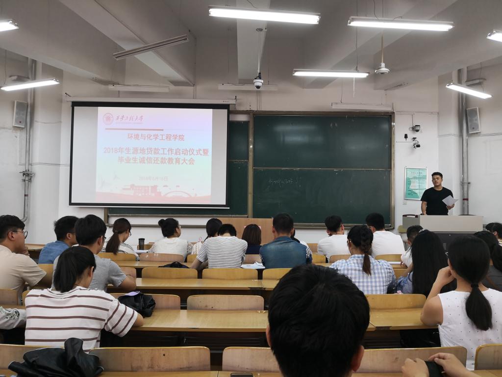 学生工作办公室在临潼校区B栋教学楼133室召开2018年生源地贷款工作启动仪式暨毕业生诚信还款教育大会。辅导员贾天昱、学院全体申请及续贷生源地贷款学生、生源地贷款受助毕业生参加了本次会议。本次会议由辅导员贾天昱主持并讲解。