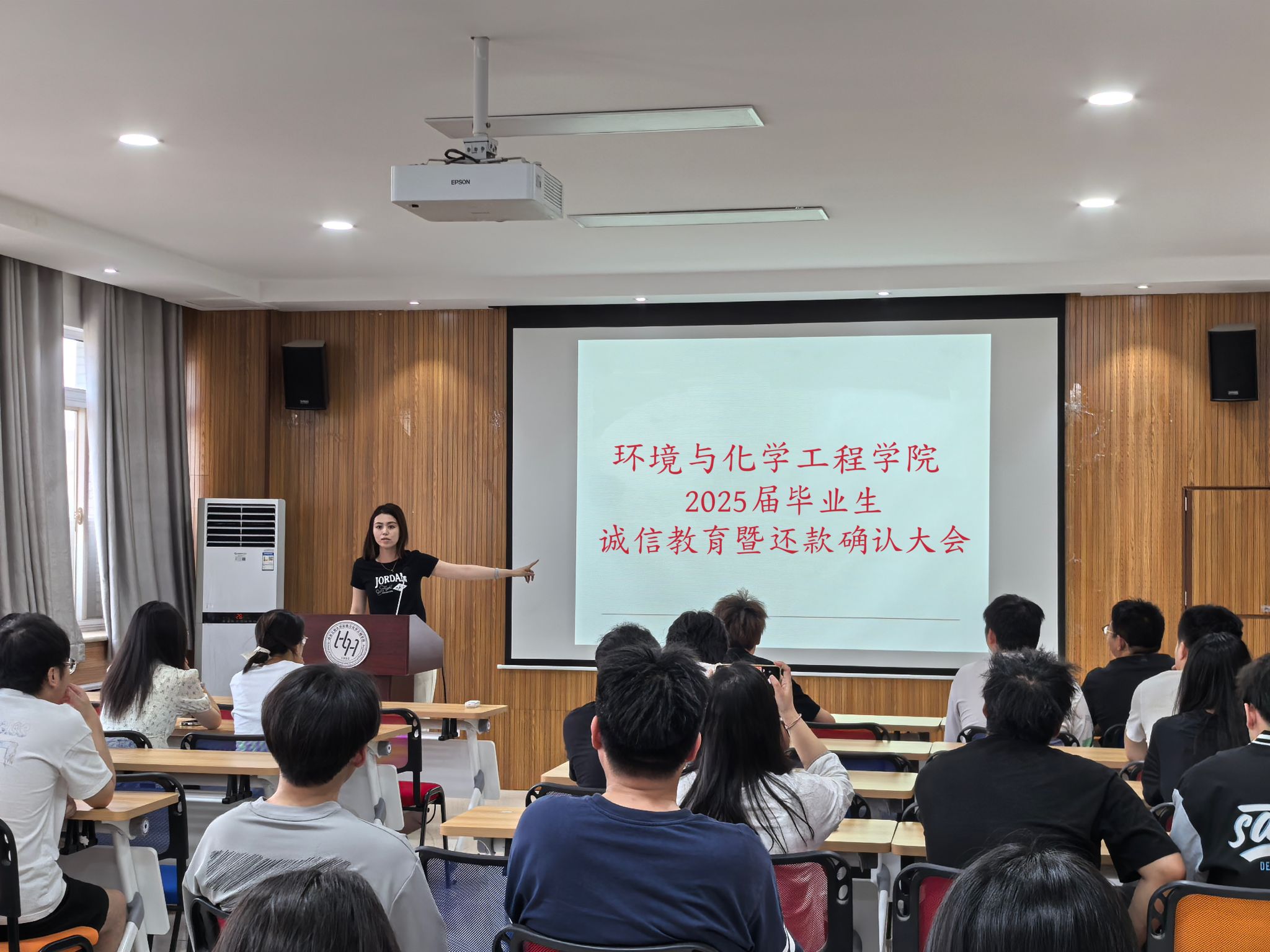 在“一站式”学生社区召开2025届毕业生诚信教育暨毕业生还款确认大会。全体生源地贷款毕业生参会,会议由资助辅导员盖潇宇主持。