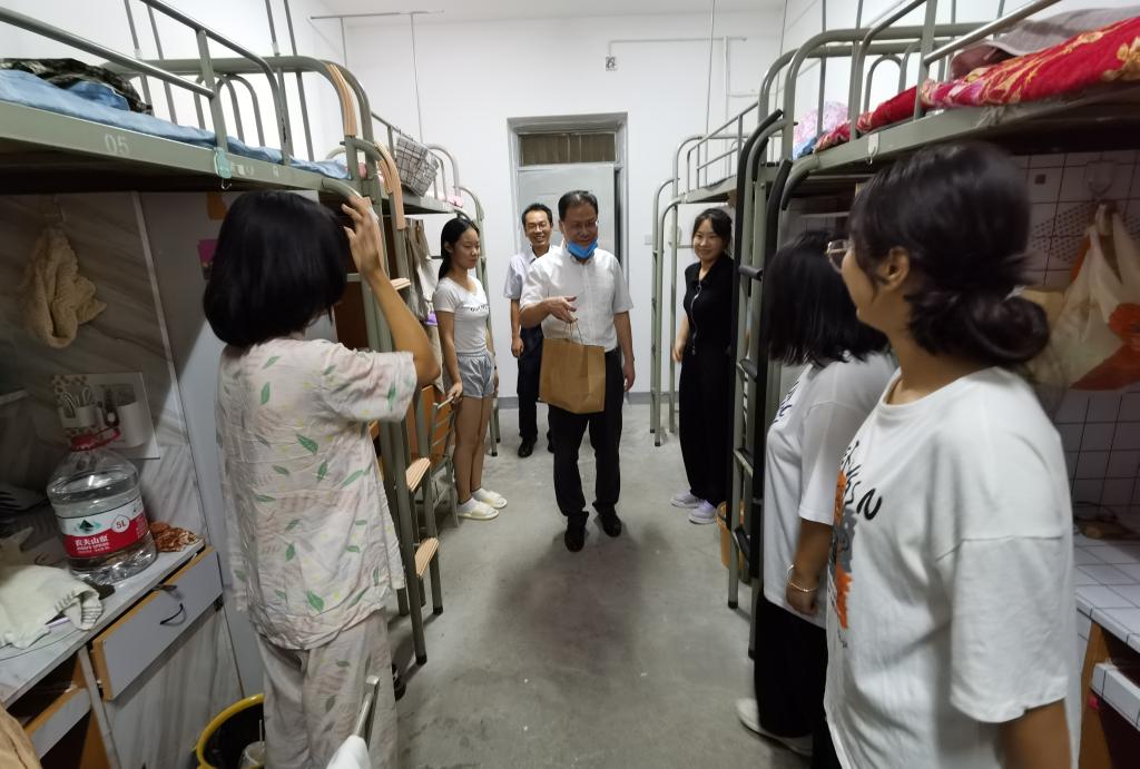 院长张洛红、党委副书记林定武、辅导员贾天昱来到新生公寓,为2022级新生送上中秋节日祝福。