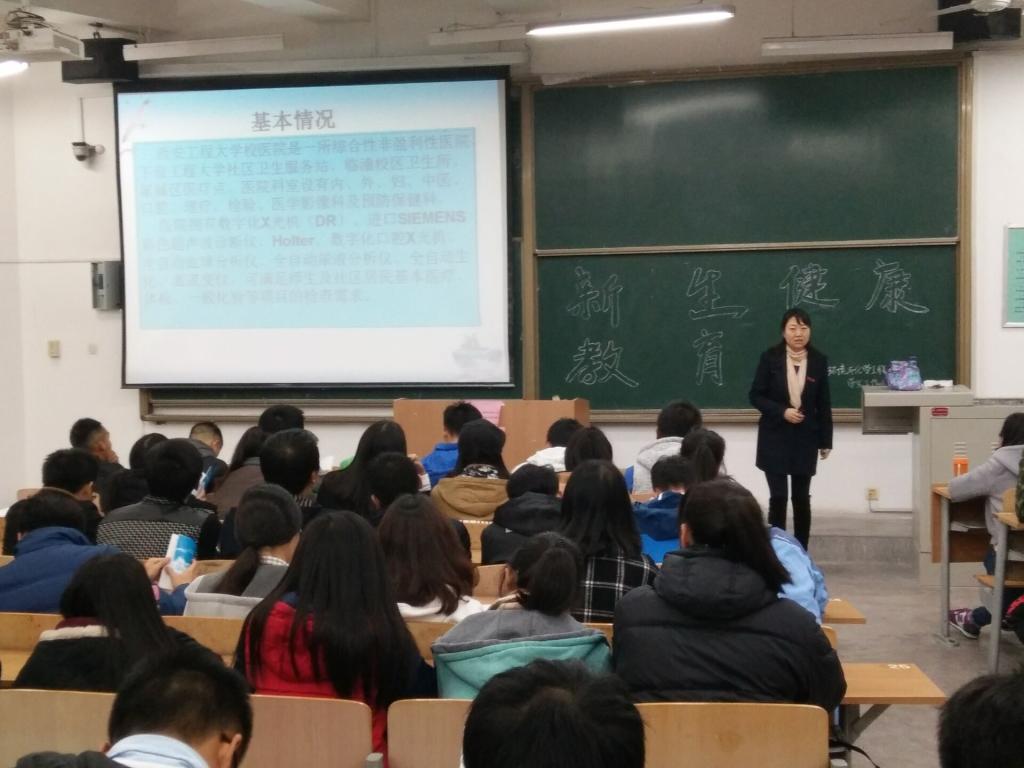 主办的新生健康教育知识座谈会在B栋教学楼233室成功召开。参加此次座谈会的人员有:14级辅导员陆瑞成老师、16级辅导员王春元老师、16级给水、建环、环科、环工专业全体学生。本次座谈会由校医院院长刘蔓茹老师主讲。